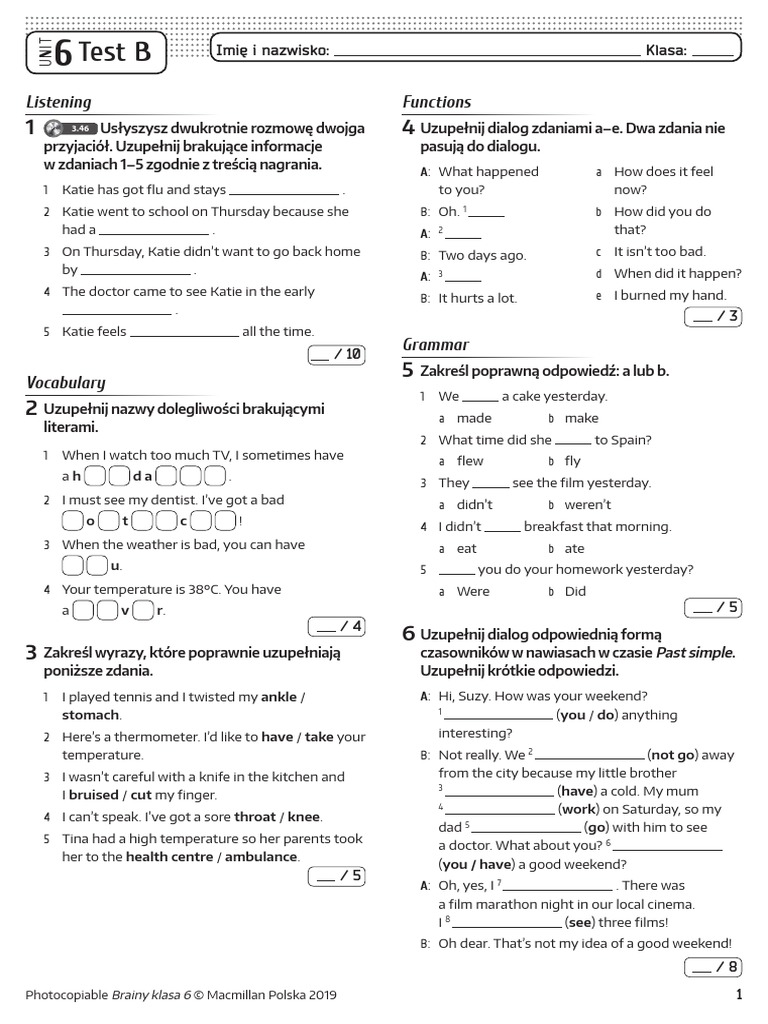 2 Uzupełnij nazwy dolegliwości brakującymi a made b make