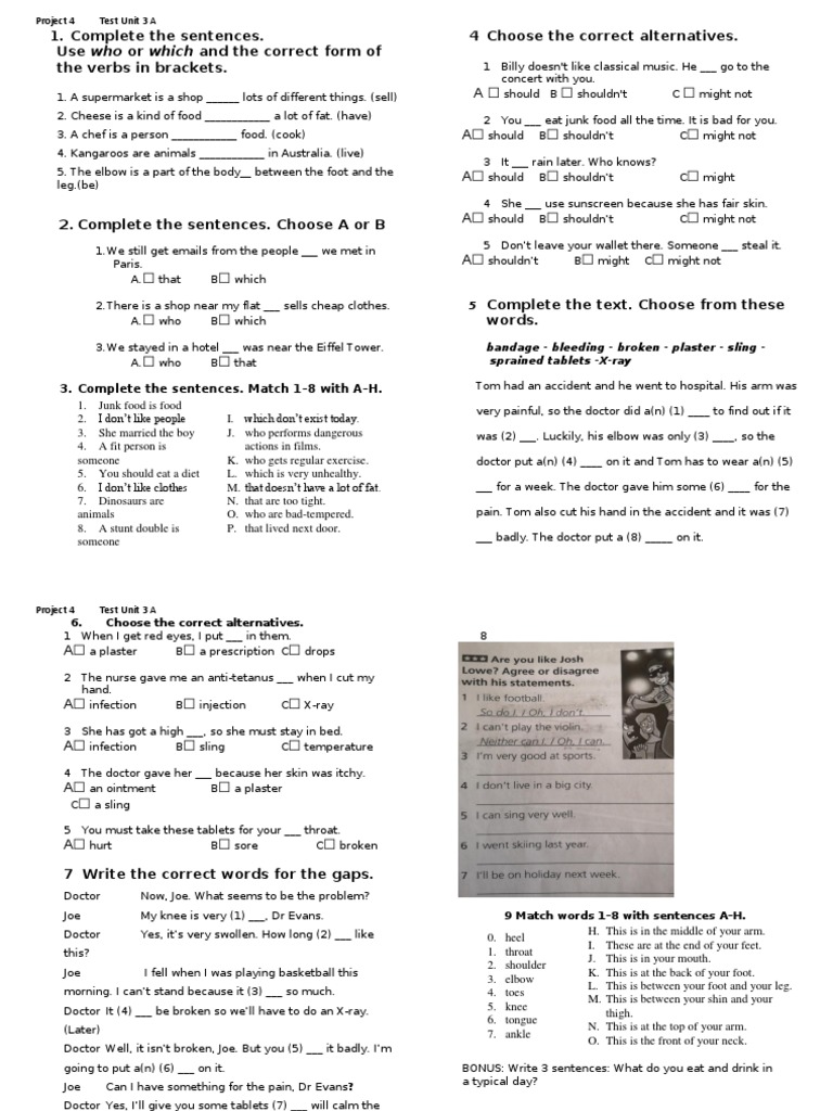 A. ☐ who B☐ that sprained tablets -X-ray